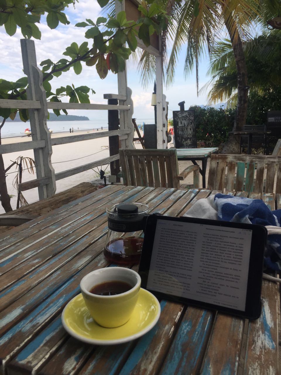На островах юго-восточной Азии хороший кофе – редкость, но я нашла единственную кофейню на пляже, где его готовят — Hippo. Хорошая кофемашина, альтернативные способы заваривания, моносорта. Кофеманы оценят эту информацию. Деревянные столики прямо на печке под кокосовыми пальмами и хороший рок-н-ролл из динамиков.